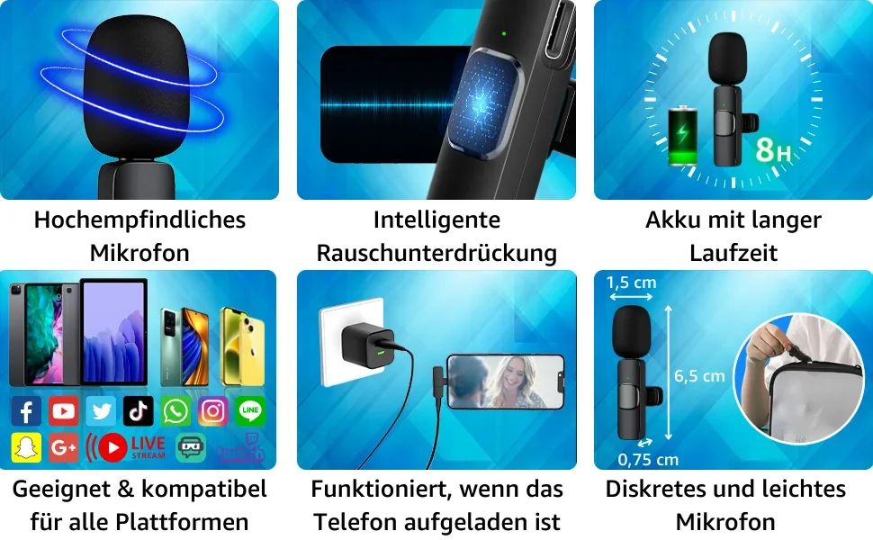 Microfone de lapela sem fio para iPhone Android Plug and Play Microfone sem fio